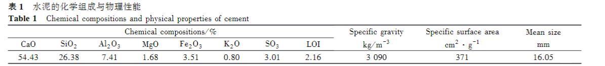 试验采用海螺水泥股份有限公司生产的P.O42.5水泥,其化学组成与物理性能见表1.
