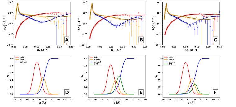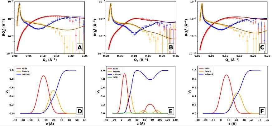 研究者使用了多种实验技术,包括中子反射(NR)、表面压力-面积(Π-A)等温线、椭偏光测量和表皮荧光显微镜,来研究PS膜和薄膜在不同压缩阶段的结构。实验中使用了由DPPC、棕榈酰油酰基-sn-甘油-3-磷酰胆碱(POPC)和棕榈酰油酰基-sn-甘油-3-磷脂酰甘油(POPG)组成的模型PS膜,并在其中添加了10%的SP-B或SP-C。研究结果表明,SP-B在PS膜的三维结构形成中起着关键作用,能够稳定界面并促进脂质储库的形成。而SP-C虽然在脂质交换中发挥作用,但需要SP-B的存在才能整合到界面结构中。这些发现为理解PS在呼吸过程中的动态行为提供了重要的结构基础,并为设计新一代优化的临床PS制剂提供了理论依据。
