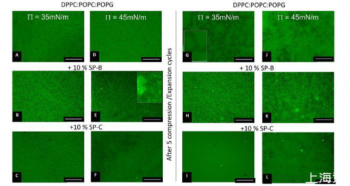 自发现以来,破译呼吸气液界面处肺表面活性剂(PS)的分子结构一直是一项重大挑战。这在呼气结束时的最小肺容积和表面积下尤为重要,此时PS会迅速重组为3D膜网络而不会与界面膜分离,从而确保后续呼吸周期的准备和稳定性。研究人员利用中子反射法和落射荧光显微镜在专门设计的表面天平中,研究了模型PS膜和薄膜在不同压缩阶段的结构,重点关注疏水表面活性剂蛋白SP-B和SP-C在界面系统组织中的关键作用。所研究的模型表面活性剂薄膜的结构(均与界面平面正交和横向分析)在很大程度上取决于成分。阐明了SP-B和SP-C的不同作用,揭示了只有SP-B(表面活性剂中唯一对生命不可或缺的蛋白质)在界面下方的3D膜库成核。