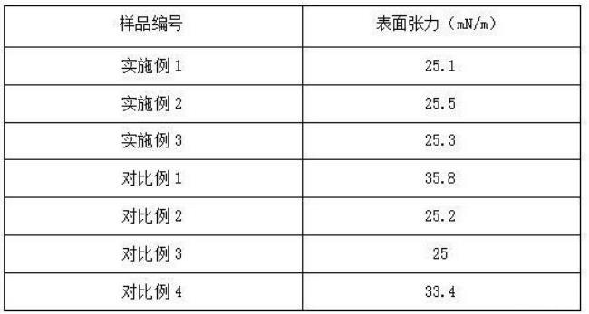 1、抗盐性测试:配制高盐模拟盐水:矿化度32000mg/L,Ca2+、+Mg2+为1500mg/L;收集上述实施例1-3以及对比例1-2中制得的表面活性剂组合物,采用高盐模拟盐水将其配置成质量浓度为0.3%的表面活性剂组合物溶液,根据《SYT 5755-2016压裂酸化用助排剂性能评价方法》中的方法测量溶液与原油(黏度为12mPa·s,温度为45℃)之间的界面张力,测量温度为25℃。